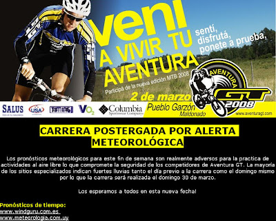 Se suspendió Aventura GT Pueblo Garzón (pasa a 30/mar)
